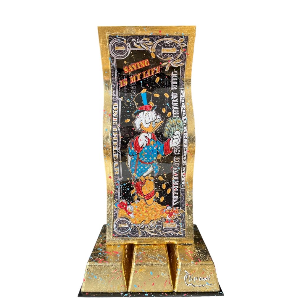 - Dollar réalisé en aluminium ondulé - Lingots patinés à la feuilles - Peinture relief - Certificat d authenticité - Edition limité 8 exemplaires