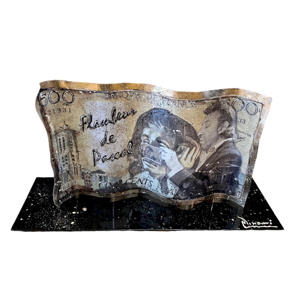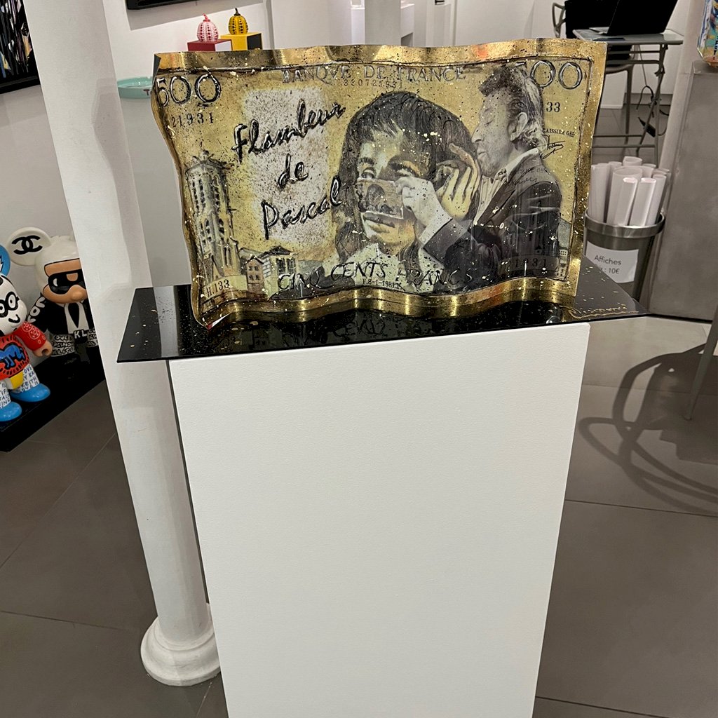 - Réalisé en aluminium ondulé - Patine à la feuille - Peinture relief - Plaque amovible sous le billet - Serie limitée - Certificat d'authenticitè