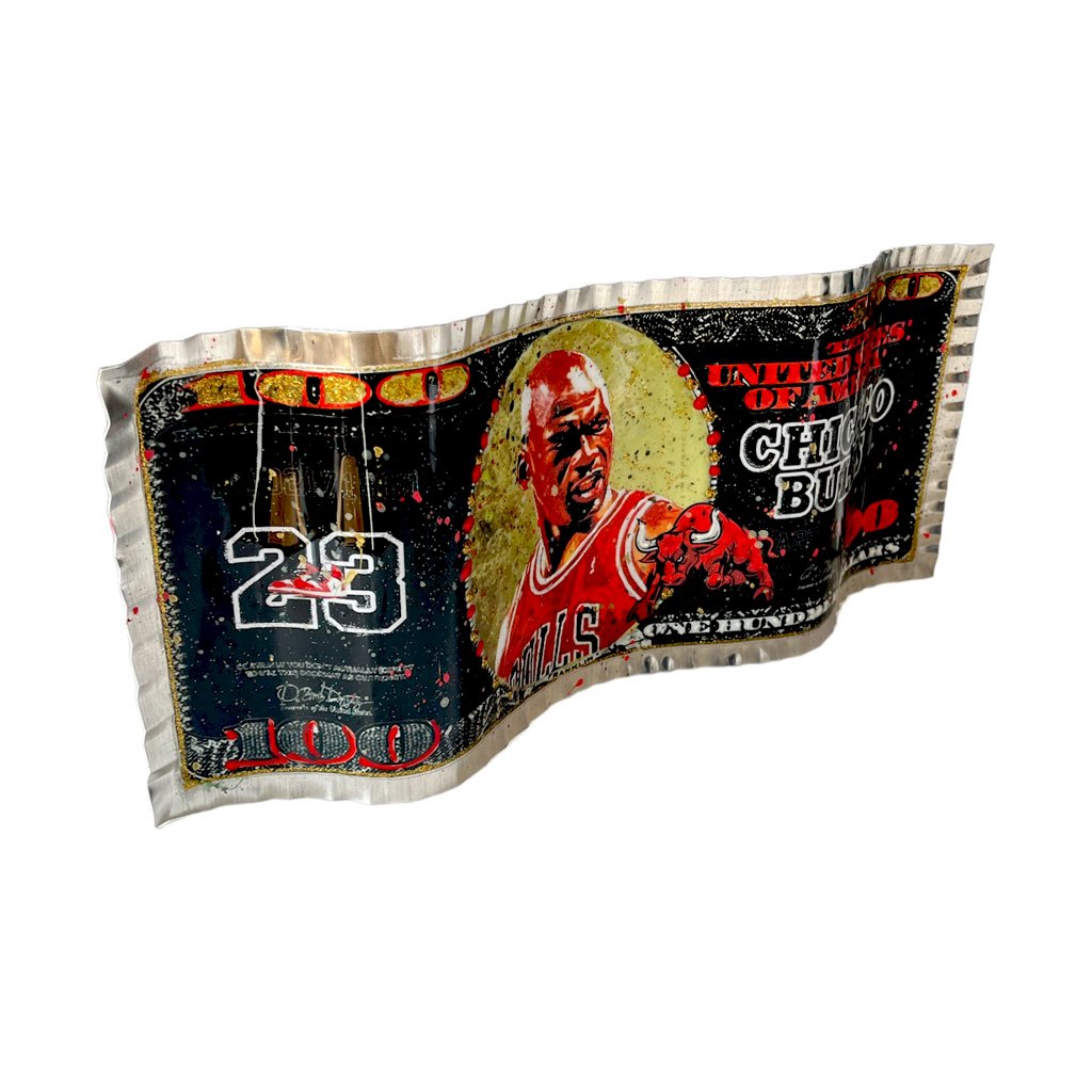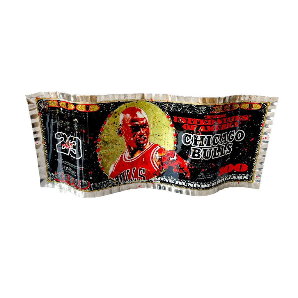 - Dollar réalisé en aluminium ondulé - Peinture relief - patine feuille d' or - Attache a l arriére - Certificat d' authenticité