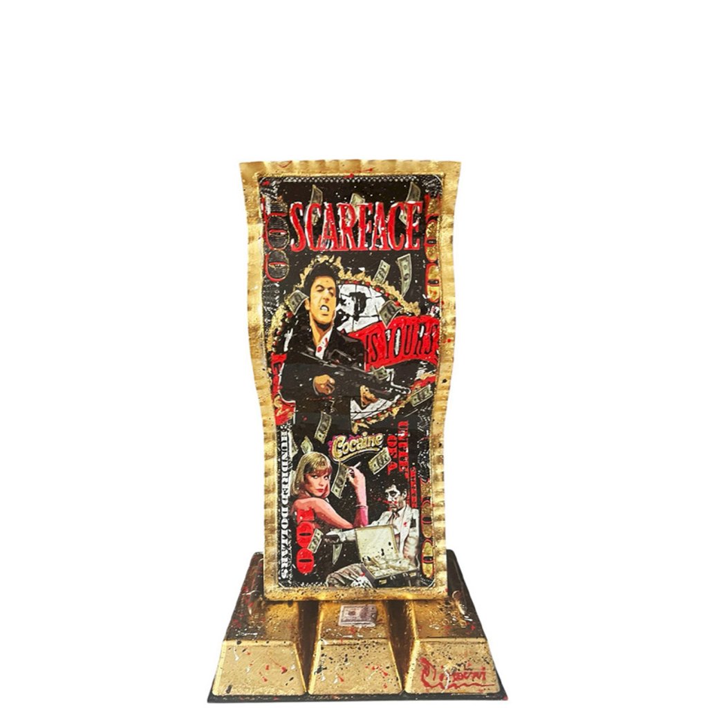 - Dollar réalisé en aluminium ondulé - Lingots patinés à la feuilles - Peinture relief - Certificat d authenticité