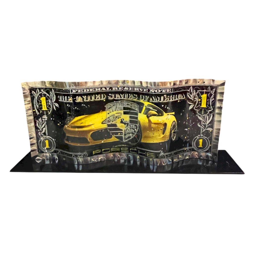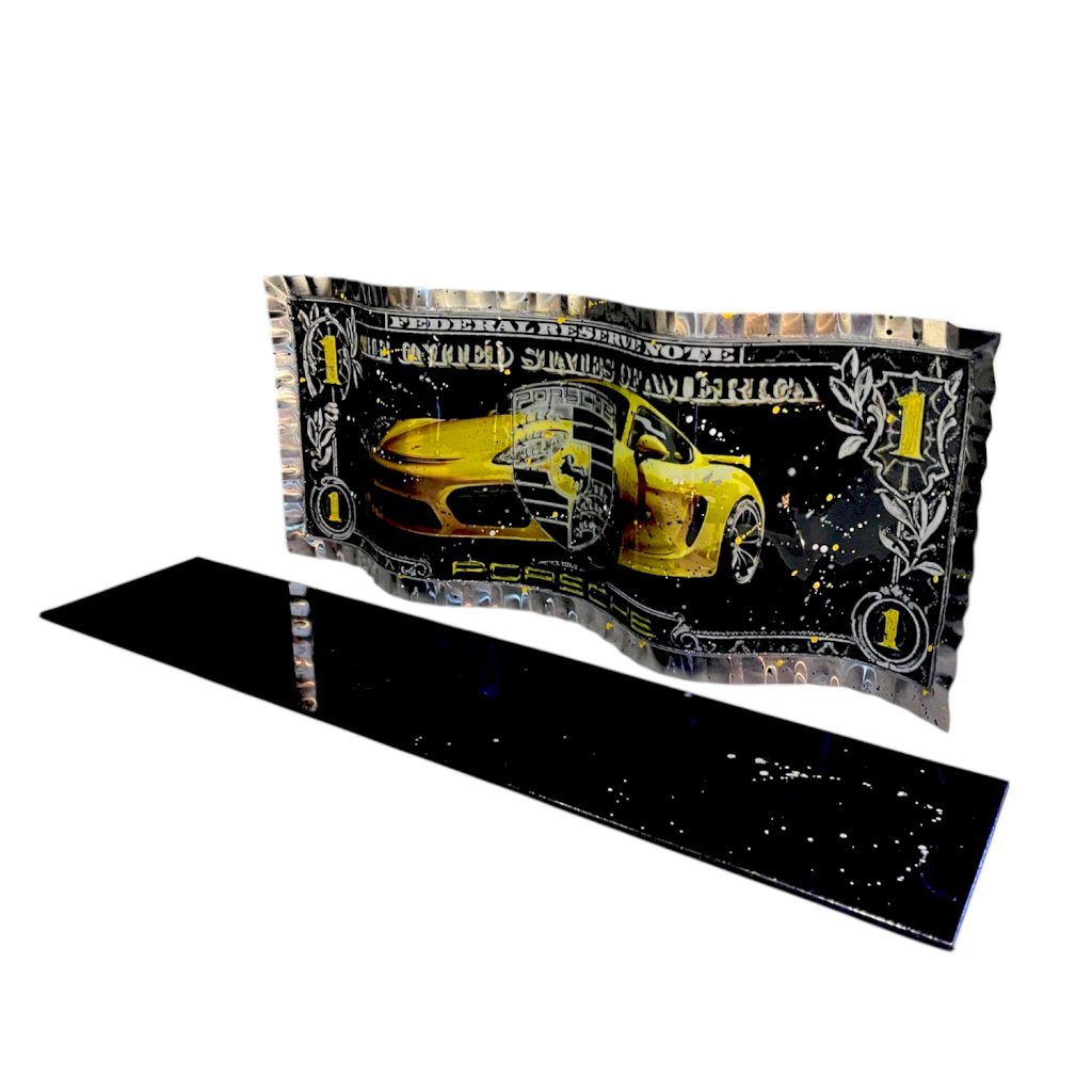 -- Dollar réalisé en aluminium ondulé - Bords martelés - Peinture relief - Anneau d'accroche à l'arrière - Certificat d' authenticité - plaque aluminium or sous dollar