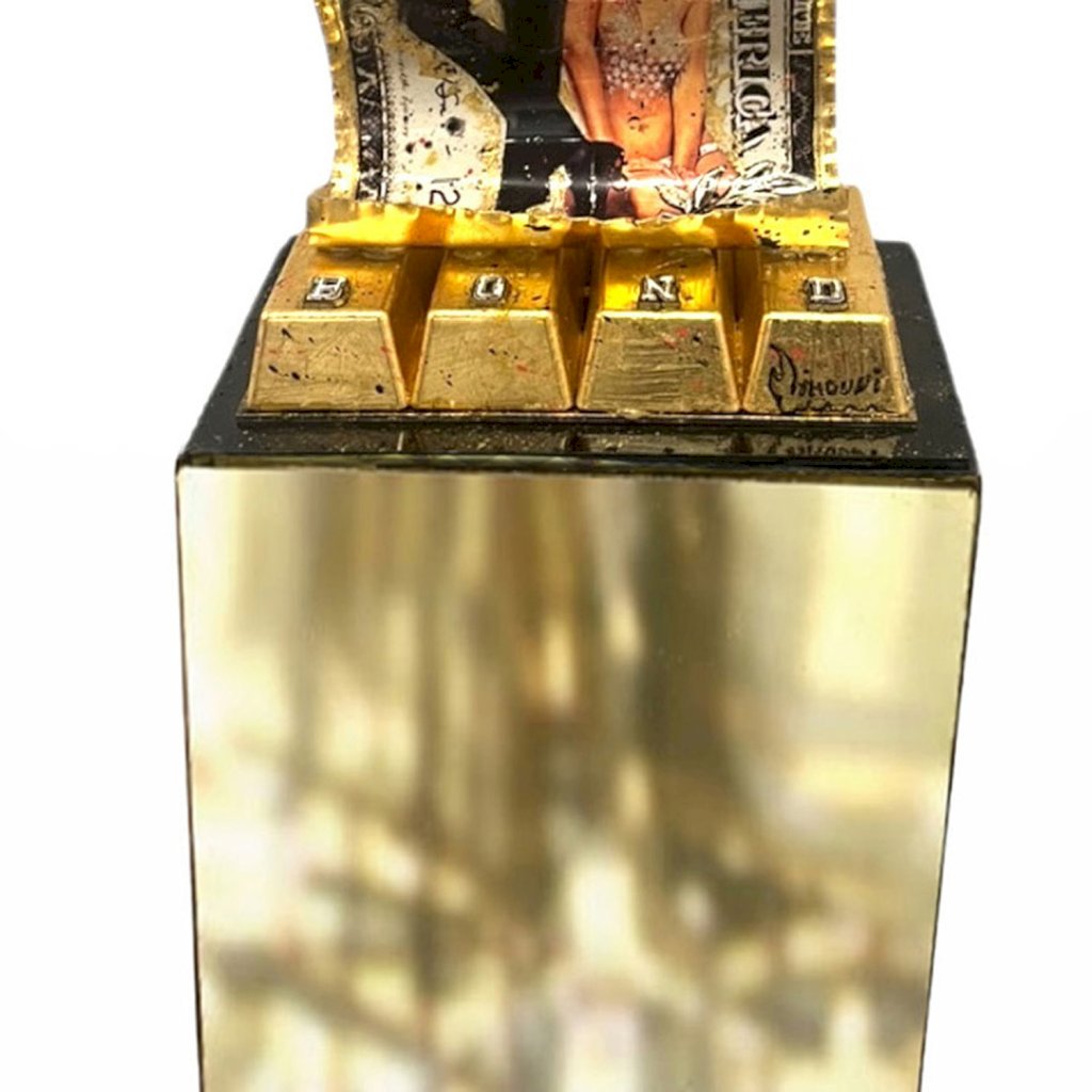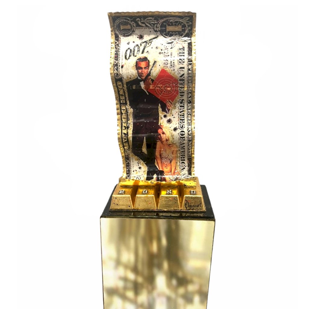 - Dollar made of aluminium - Gold leafs patina - Painting 3d - Base aluminium gold miror removable - Certificate of origin
