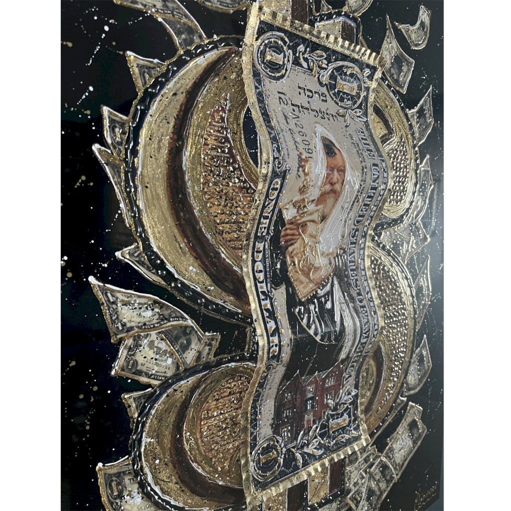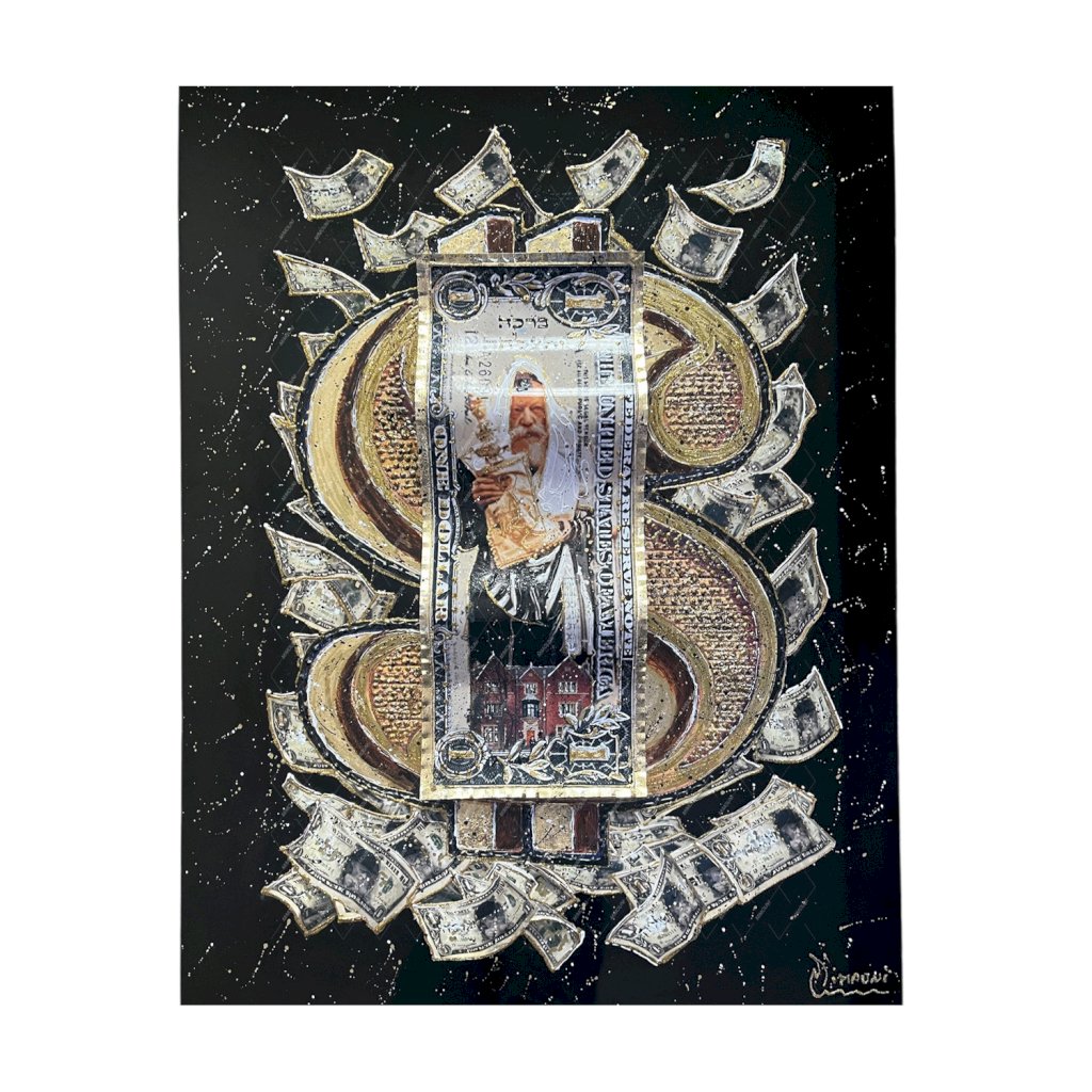 - Patine a la feuille d 'or - Peinture relief - Technique mixte - Dollar ondulé - Cable d'accroche à l'arrière - Certificat d ' authenticité